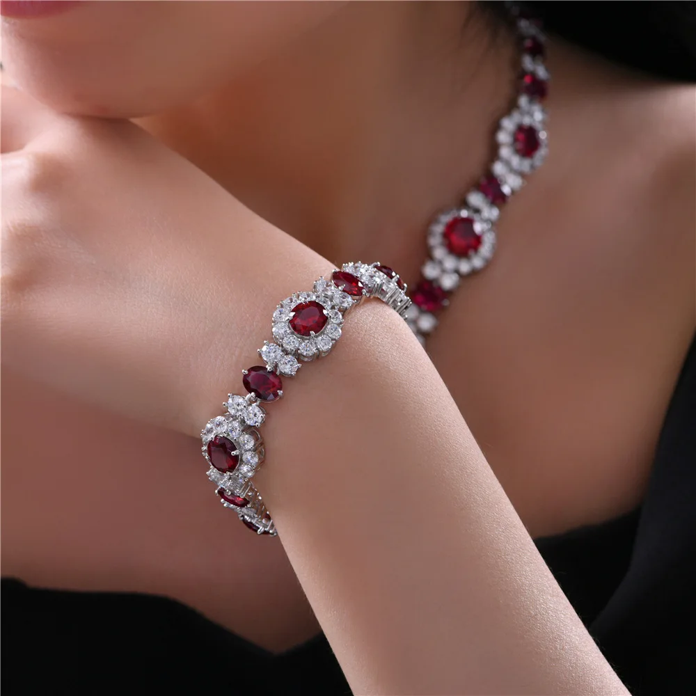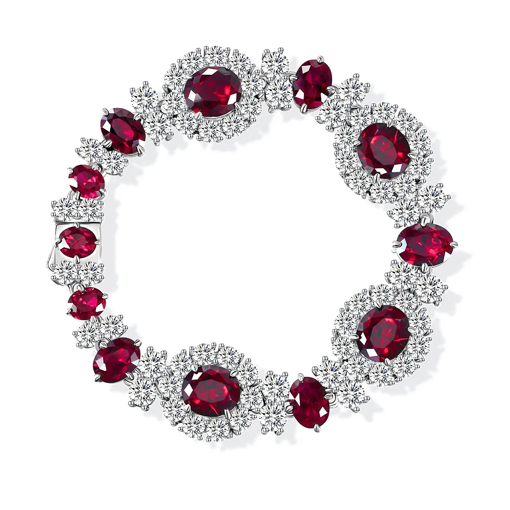 Solid Silver Simulated Ruby Oval Gemstone Iced Out Floral Bracelet 5A Cubic Zirconia Wedding Bling Bracelets S2R1S2B0101 Party Cocktail Statement Bracelets Premium Lab Grown Gemstone Fine Jewelry Perfect Gift for Her※ Metal: Solid 925 Sterling Silver※ Plating Color: White Gold Tone※ Stone: Imported 5A Cubic Zirconia※ Stone Size: 7*9mm/2ct※ Stone Color: Ruby; White※ Setting: Prong Set※ Weight: 30.8g※ Length: 16cm✦ Ables Chic® is a UK Registered Trademark✦ Premium Fine Jewelry Wholesale Since 2006✦ 18K/14K Gold Jewelry Customization Available✦ Dropshippers Welcome