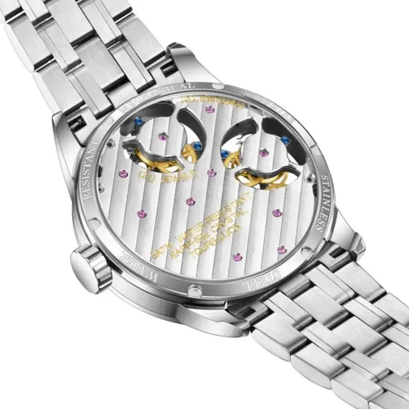 Tourbillon IntroductionTourbillon is a kind of clock speed regulating device invented by watch master Louis Baoji in 1795. The purpose of the flywheel mechanism is to correct the errors caused by gravity. Tourbillon watch represents the highest level in the manufacturing process of mechanical watch, and has always been known as the "king of the watch".Product parameterMovement: Original tourbillon skeleton movementWaterproof: 50MWatch mirror: synthetic sapphireStrap material: first layer cowhideDial features: double-sided hollow designCase material: stainless steelDial thickness: 12mmDial diameter: 42.5mmFrequency: 28800Hz/HrEnergy storage: 40 hoursTravel time error: ±10 seconds/dayWarranty : 3 yearsPackage include1.Original watch2.Watch box3.Warranty CardTest dataSTRONG LUMINOUSWith Luminous Hands , Easy to Be Used In The DarkMultiple Color StylesBOXAfter sales support:We are professional sellers, all products purchased in our store enjoy the best after-sales service:1. Warranty: 3 years;2. If the goods are not received, a full refund will be given;3. Within 3 months after receiving the goods, if it is the problem of the watch itself, we provide free repair service and bear the freight; if it is damaged by the customer, we provide repair service, maybe need some repair fee , and the customer bears the freight;4. After 3 months after receiving the goods, if it is the problem of the watch itself, we provide free repair service, and the customer bears the freight. If it is damaged by the customer, the corresponding repair fee and the freight need to be charged.Watch maintenance knowledge1.SHOCKS: accidental collision should be avoided.2.CHEMICAL PRODUCTS: avoid direct touching with solvents, detergents, perfumes, cosmetic products etc., since they may damage the bracelet, the case or the gaskets.3.CLEANING: for metal bracelets and for all cases, use a toothbrush with soapy tap water and a soft cloth for drying.4.LEATHER STRAP: (1)Avoid touching with water and dampness to prevent discoloration and deformation.(2) Avoid prolonged exposure to sunlight to prevent the colour from fading.(3)Do not forget that leather is permeable! Therefore avoid contact with greasy substances and cosmetic products. It is not advisable to clean your strap with leather cleaners.Feedback1, We are a responsible seller. And hope you enjoy your shopping in my aliexpress shop.2, If you like our service and products, 5 stars rating positives feeback and upload picture would be appreciated.3, And if you have any questions, please feel free to contact me before you leave any feedbacks.