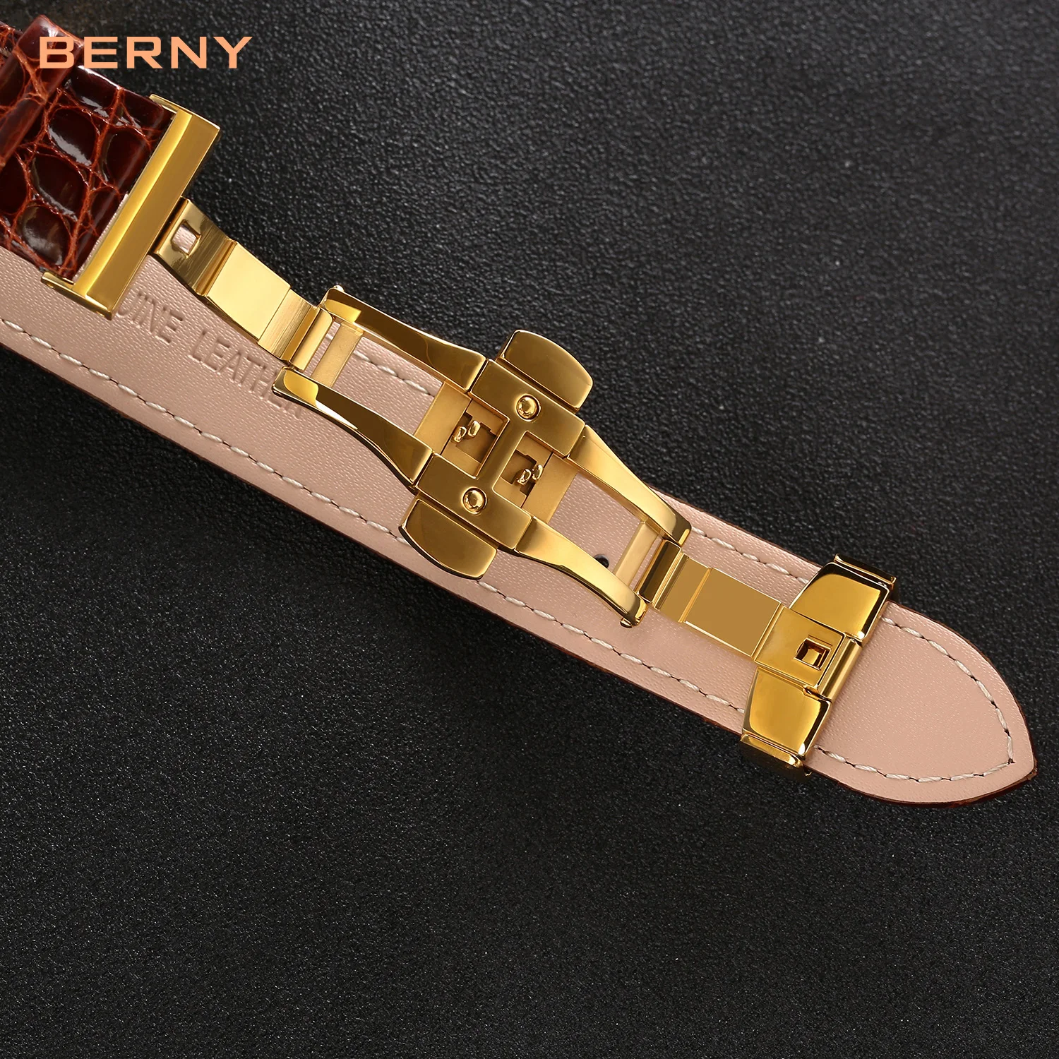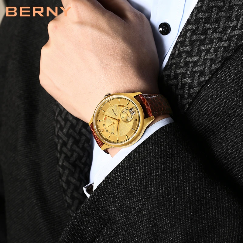 BERNY 18K Gold Men Quartz Watches Luxury Swiss Movement Day Date Calendar Business Style Wateproof Wristwatch Relogio Masculino
