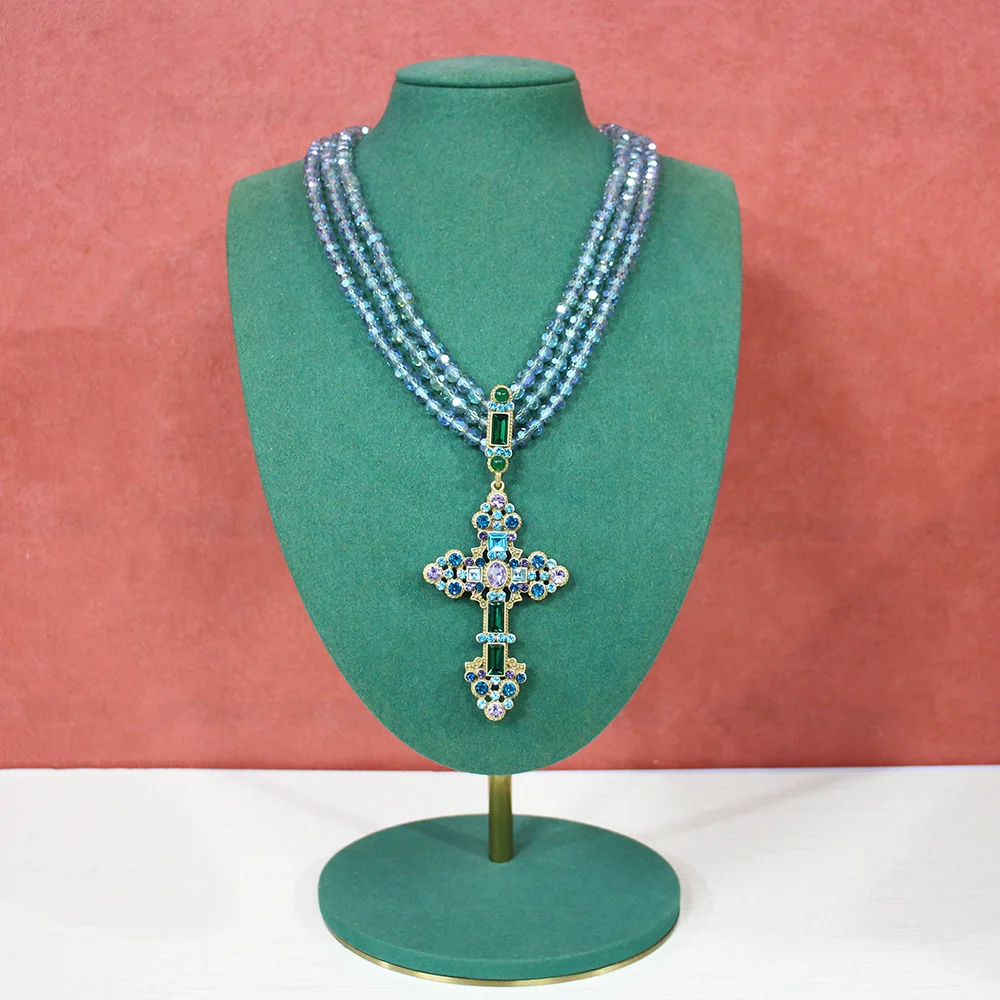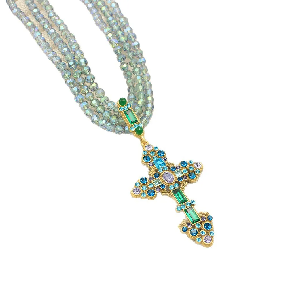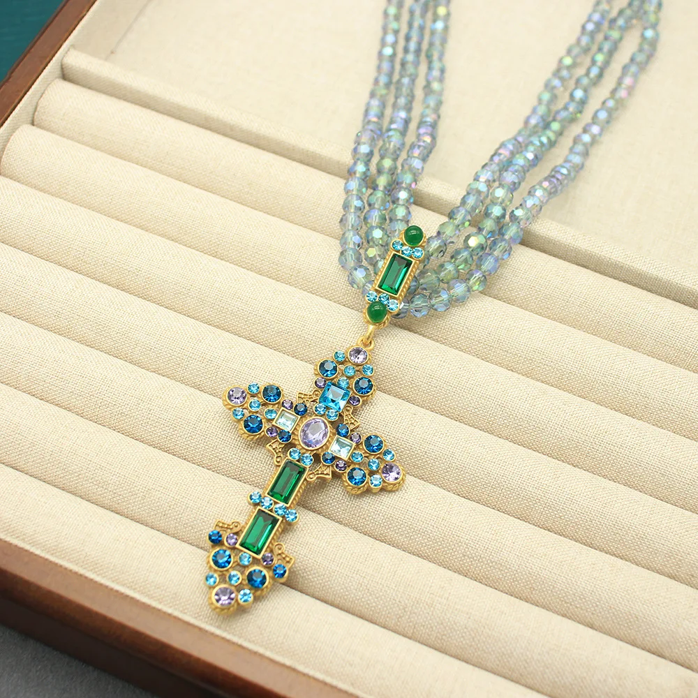 European and American Fashion Trends, Literary Niche Design, Handmade Crystal Beaded Cross, Shiny Rhinestone Sweater NecklaceAvailability: 27 in stock