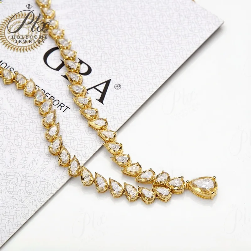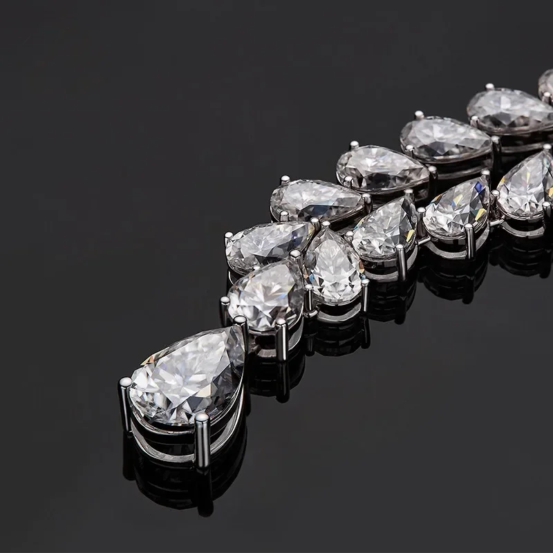>>>>Hip-Hop Tennis Necklace Mian Stone:Moissanite Stone Color:White Color Stone Shape:Pear Shape Stone Size:8x12mm-1pc/6x8mm-2pcs/5x8mm-24pcs/5x7mm-20pcs/4x6mm-23pcs Materials:925 Sterling Silver/10K Gold/14K Gold Clarity:VVS1 Package: 1xNecklace+1x Gift Box+1xSilver Polishing Cloth >>>>Product Sellpoints 1.100% 925 sterling silver will not fade, and will not cause allergies during long-term wear. 2. All products use high-quality VVS1 clarity grade moissanite, which has beautiful fire and high hardness. They are brighter than diamonds and more affordable than diamonds. 3. All moissanite products are matched with the corresponding authoritative GRA certificate, one product one certificate 4. Classic brilliant cut, excellent tailoring ensures maximum light reflection, and it is more shiny when worn. >>>>YOU MAY ALSO LIKE
