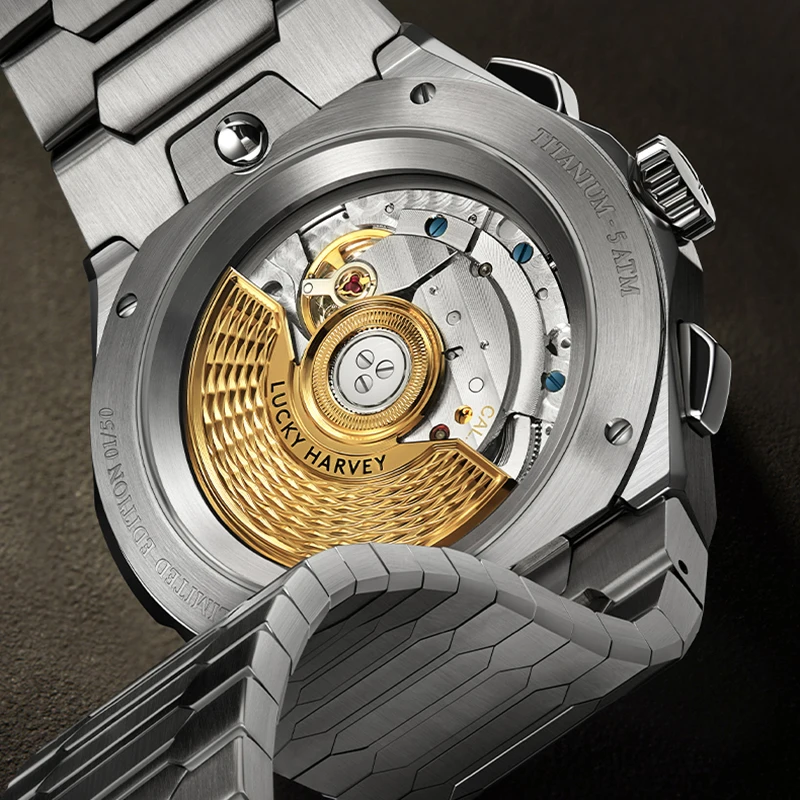 Product ParameterMovement: LH003 Mechanical CalibreFrequency: 28,800V.P.H(4hz)Jewels: 30 Rubies Case Diameter: 40mm Case Strap: Grade 5 Titanium Crystal: Sapphire Water Resistance: 5 Bar Weight:101g(fit a titanium alloy strap)Wrist Fit: 150-250mm Case Back: Sapphire Crystal Clasp: Folding Clasp
