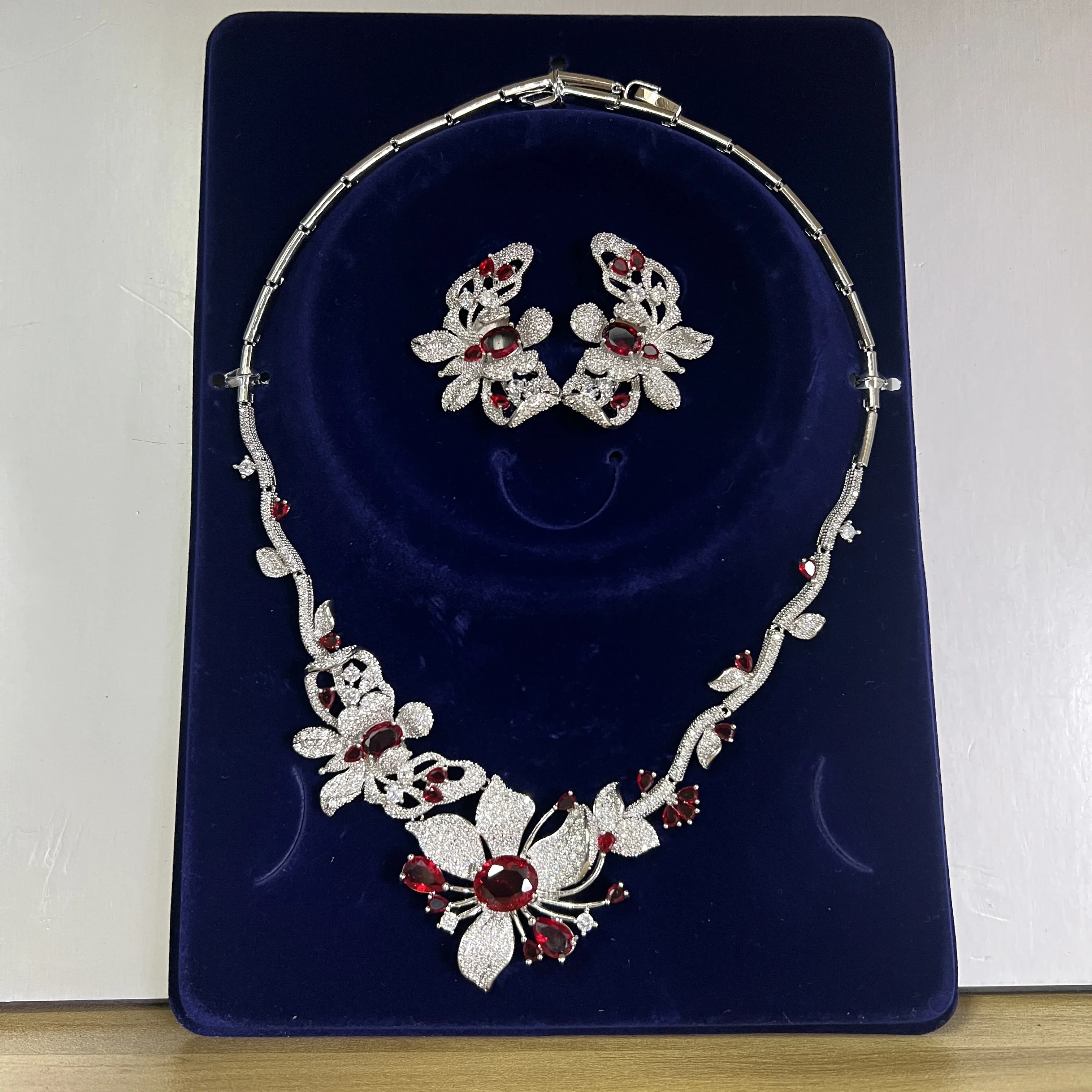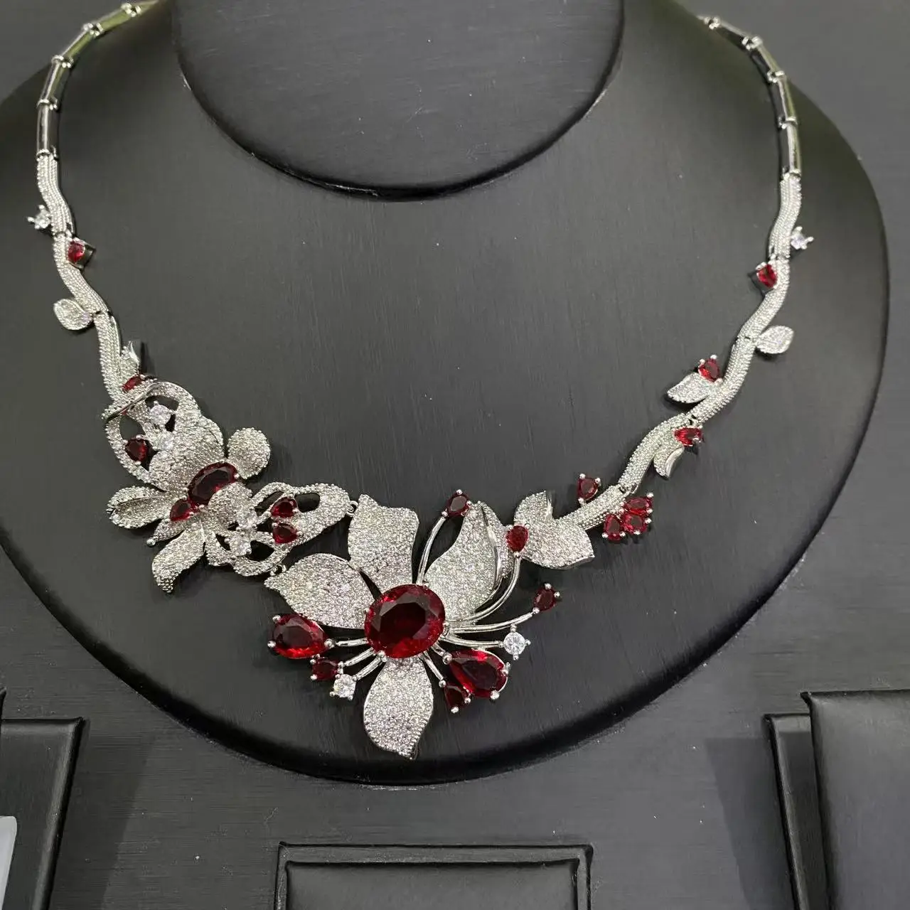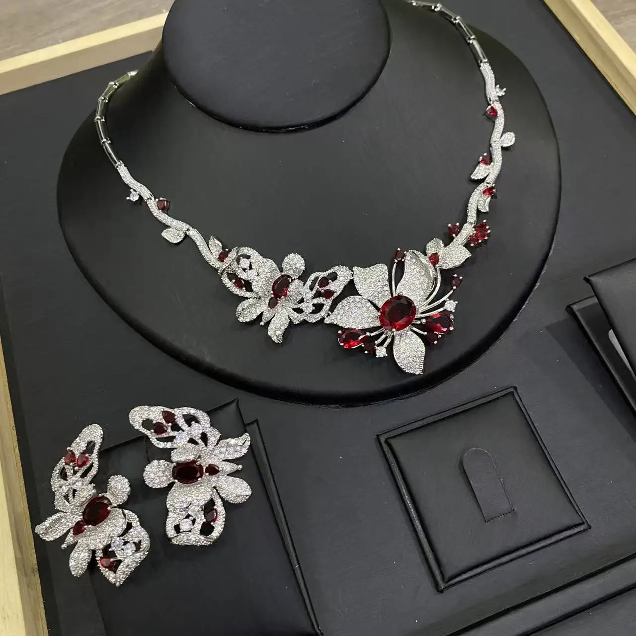 Red CZ Jewellery Elegant Flower and Butterfly Design Necklace Set For Women Party Prom Wedding Graduation Dress Accessories 1Red CZ Jewellery Elegant Flower and Butterfly Design Necklace Set For Women Party Prom Wedding Graduation Dress Accessories